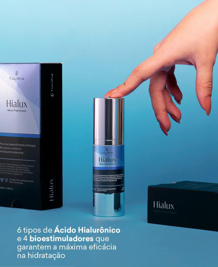 O Ácido Hialurônico é produzido naturalmente pelo organismo, mas essa produção reduz consideravelmente com o passar dos anos. O sérum preenchedor HialuX foi desenvolvido para agir na reposição de Ácido Hialurônico, que combinado aos ativos Nano Up Lift e Nanofactor® IGF, potencializa e estimula a produção de colágeno, recuperando a firmeza da pele.